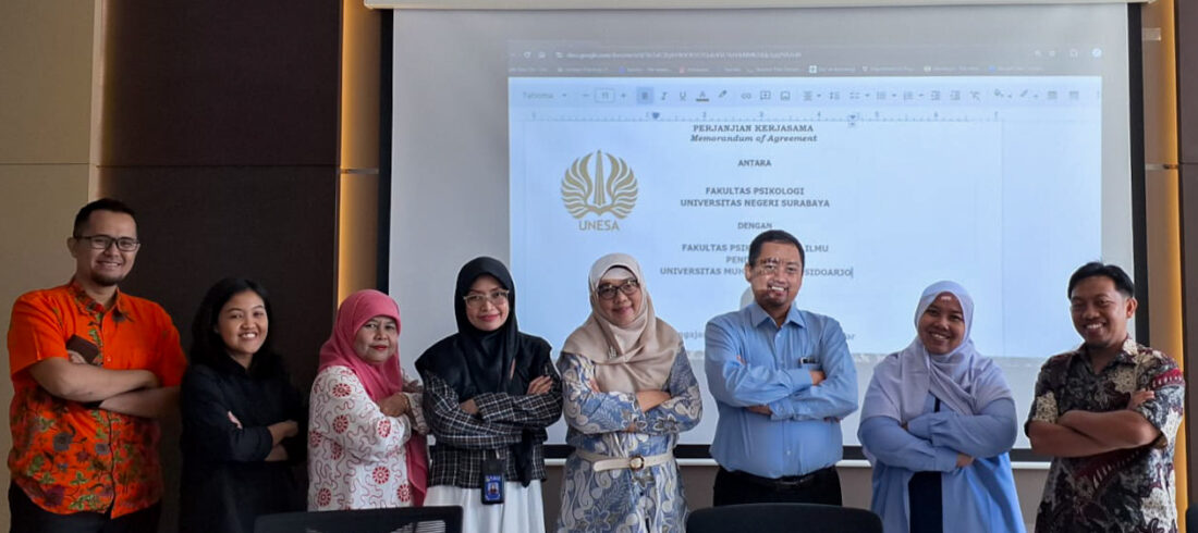 fpip.umsida.ac.id – Surabaya, (27/05/2024), Fakultas Psikologi dan Ilmu Pendidikan (FPIP) Universitas Muhammadiyah Sidoarjo (Umsida) melakukan kunjungan di Fakultas Psikologi Universitas Negeri Surabaya (UNESA) guna melakukan kerjasama antar institusi dalam peningkatan mutu pendidikan psikologi. Upaya kerjasama ini dimulai dengan pembahasan nota kesepahaman yang dihadiri oleh Wakil...Read More