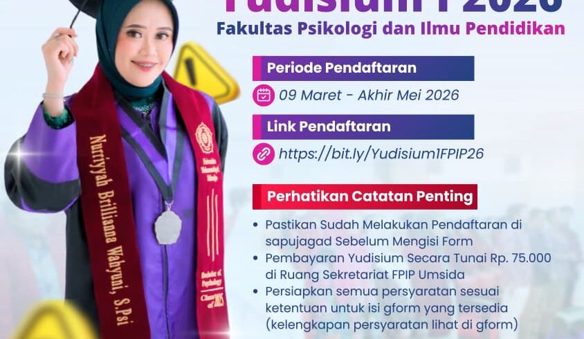 fpip.umsida.ac.id — Kabar gembira bagi mahasiswa tingkat akhir di lingkungan Fakultas Psikologi dan Ilmu Pendidikan (FPIP) Universitas Muhammadiyah Sidoarjo (Umsida). FPIP Umsida secara resmi mengumumkan pembukaan pendaftaran Yudisium Periode I Tahun 2026. Tahapan ini menjadi langkah penting bagi mahasiswa sebelum resmi menyandang gelar akademik. Melalui...Read More