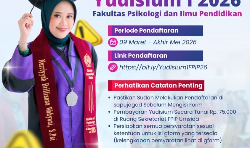 fpip.umsida.ac.id — Kabar gembira bagi mahasiswa tingkat akhir di lingkungan Fakultas Psikologi dan Ilmu Pendidikan (FPIP) Universitas Muhammadiyah Sidoarjo (Umsida). FPIP Umsida secara resmi mengumumkan pembukaan pendaftaran Yudisium Periode I Tahun 2026. Tahapan ini menjadi langkah penting bagi mahasiswa sebelum resmi menyandang gelar akademik. Melalui unggahan media sosial resminya, FPIP mengajak seluruh mahasiswa yang telah menyelesaikan tugas akhir untuk segera melengkapi persyaratan administratif. Sebagai salah satu fakultas dengan akreditasi unggul,...Read More