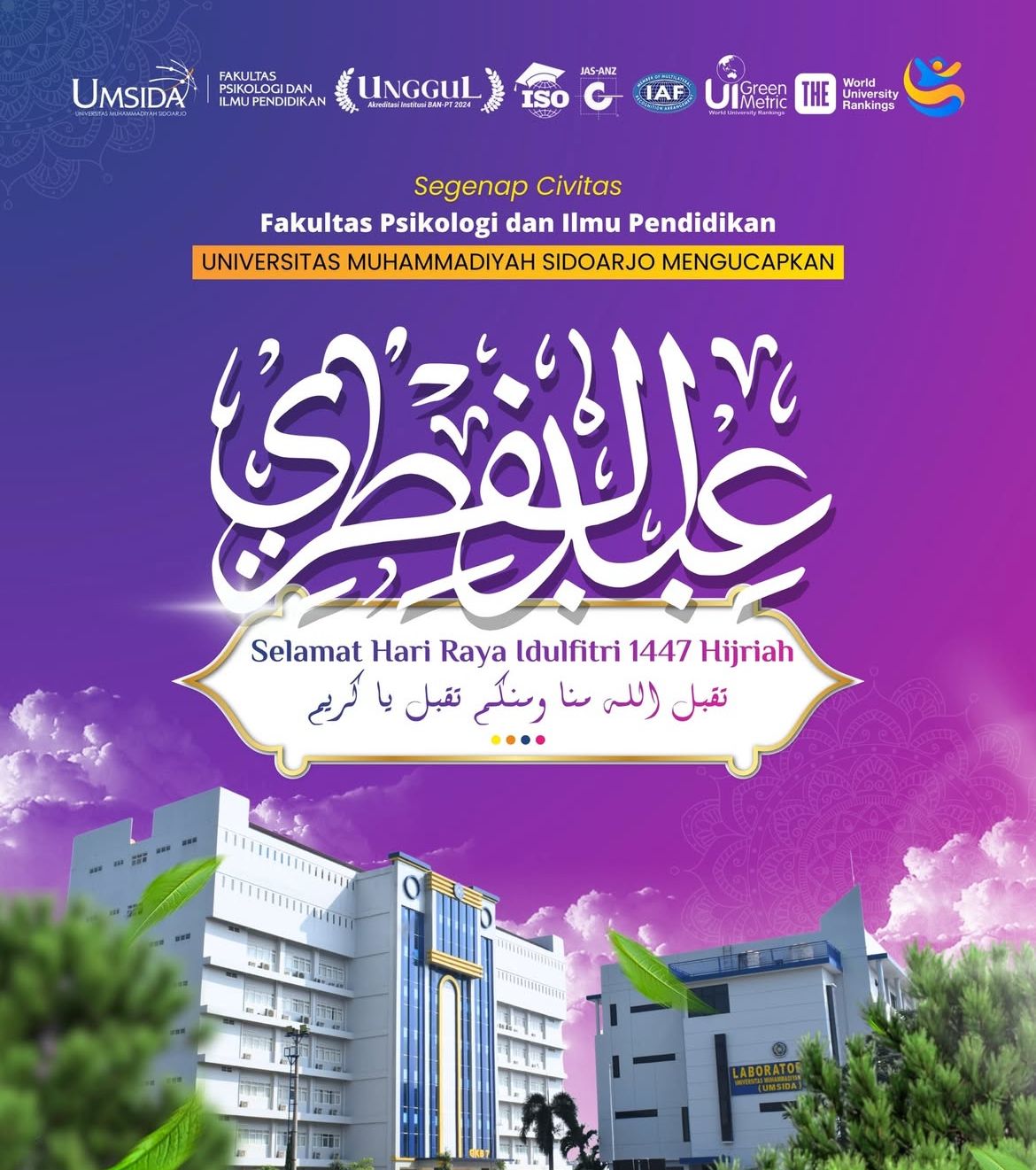 fpip.umsida.ac.id — Fakultas Psikologi dan Ilmu Pendidikan (FPIP) Universitas Muhammadiyah Sidoarjo (Umsida) menyambut Hari Raya Idulfitri 1447 Hijriah dengan menyampaikan ucapan penuh makna kepada seluruh civitas akademika dan masyarakat luas.